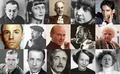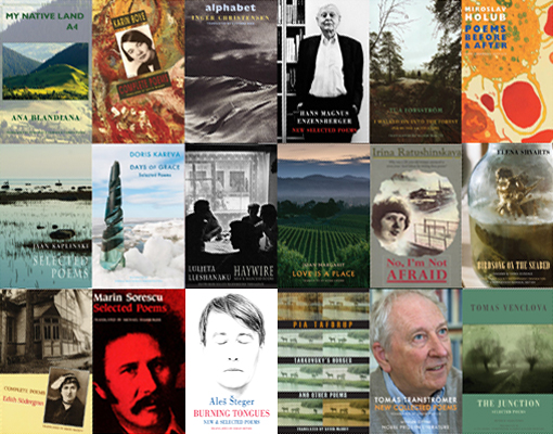 The Bloodaxe list includes authoritative translations of some of the greatest poets in world literature of the modern era, including (pictured in this order above): Kenji Miyazawa from Japan; Anna Akhmatova, Osip Mandelstam and Marina Tsvetaeva (Russia); Federico García Lorca and Miguel Hérnandez (Spain); Pablo Neruda (Chile); Odysseus Elytis and Yannis Ritsos (Greece), Yves Bonnefoy, René Char, Paul Éluard, and Paul Valéry (France); Mirjam Tuominen and Edith Södergran (Finland).